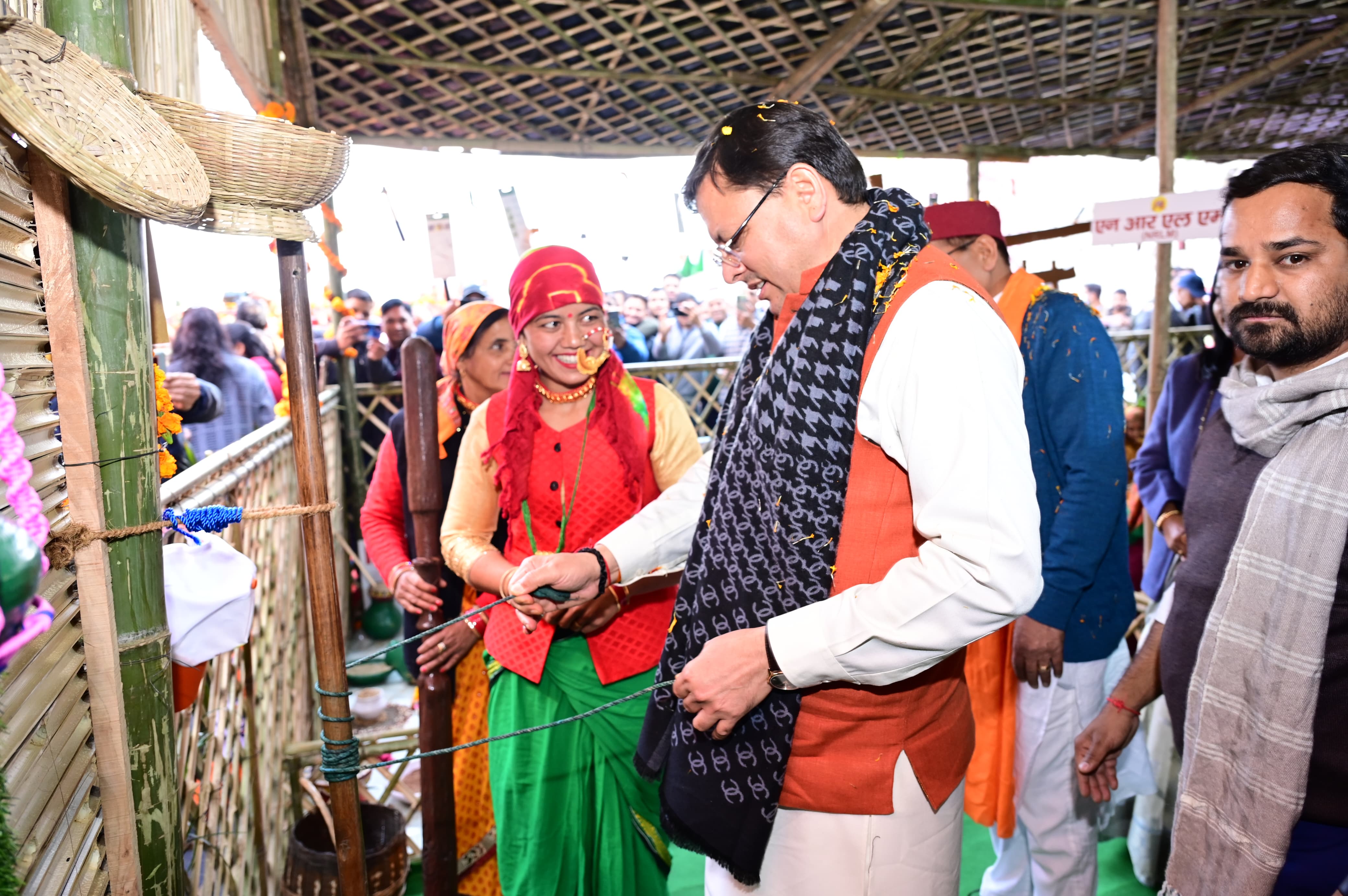 देहरादून (सू0वि0)। मुख्यमंत्री ने टिहरी में किया 415 करोड़ की 160 योजनाओं का लोकार्पण एवं शिलान्यास। निवेश के तहत टिहरी में हुए 3900 करोड़ के एमओयू में से 2400 करोड़ की ग्राउंडिंग का भी किया शुभारंभ। मुख्यमंत्री ने नई टिहरी में आयोजित “बेटीब्वारयूं कु कौथिग“ में किया प्रतिभाग मुख्यमंत्रीपुष्कर सिंह धामी ने मंगलवार को नई टिहरी स्थित प्रताप इंटर कॉलेज बौराड़ी में आयोजित “बेटीब्वारयूं कु कौथिग“ में बतौर मुख्यअतिथि प्रतिभाग किया। इस अवसर पर मुख्यमंत्री ने 415 करोड़ की 160 विभिन्न विकास योजनाओं का लोकार्पण एवं शिलान्यास किया। जिनमें 201 करोड़ की 44 योजनाओं का लोकार्पण तथा 214 करोड़ की 116 योजनाओं का शिलान्यास शामिल है। इस अवसर पर मुख्यमंत्री ने जनपद के महिला स्वयं सहायता समूहों द्वारा निर्मित उत्पादों हस्तशिल्प और हस्तकला प्रदर्शनी का भी अवलोकन किया। मुख्यमंत्री ने स्वयं जॉन्दरा चलाकर महिलाओं को प्रोत्साहित भी किया। कार्यक्रम के दौरान मुख्यमंत्री ने इन्वेस्टर्स समिट के दौरान टिहरी में हुए 3900 करोड़ के एमओयू में से 2400 करोड़ की ग्राउंडिंग का भी शुभारंभ किया। मुख्यमंत्री ने जनपद में उत्कृष्ट कार्य करने वाली महिला स्वयं सहायता समूहों की महिलाओं को सम्मानित कर स्कूली छात्रछात्राओं को 2025 तक ड्रग्स फ्री देवभूमि बनाने की भी शपथ दिलाई। मुख्यमंत्री ने बेटी ब्वारयूँ कु कौथिग की शुभकामनाएं देते हुए कहा कि मातृशक्ति के बिना राष्ट्र का विकास संभव नहीं है, उत्तराखंड राज्य निर्माण में मातृशक्ति का योगदान अमूल्य है। मुख्यमंत्री ने कहा कि डबल इंजन की सरकार के कार्य उत्तराखंड में विकास के रूप में स्पष्ट नज़र आ रहे हैं। उन्होंने कहा कि सरकार की प्राथमिकता प्रदेश के प्रत्येक क्षेत्र का विकास करना है उन्होंने कहा कि प्रदेशभर की महिला उद्यमियों ने पारंपरिक उत्पादों पर आधारित आकर्षक प्रदर्शनी तथा स्टॉल लगाकर ये बता दिया है कि प्रदेश के विकास में महिलाओं का योगदान किसी से भी कम नहीं है। मुख्यमंत्री ने कहा कि हमारा देश महिला विकास से आगे बढ़कर महिला नेतृत्व की बात कर रहा है। उन्होंने कहा कि प्रधानमंत्री श्री नरेन्द्र मोदी के नेतृत्व में महिला सशक्तिकरण के क्षेत्र में जो काम देशभर में हो रहे हैं वे नए भारत की शानदार तस्वीर को प्रस्तुत करते हैं। आज गांवगांव में महिलाओं को घर, शौचालय, गैस, बिजली, पानी जैसी मूलभूत सुविधाओं से जोड़ा जा रहा है। बेटियों की शिक्षा, स्वास्थ्य, पोषण, टीकाकरण और दूसरी आवश्यक जरूरतों पर भी सरकार पूरी संवेदनशीलता से कार्य कर रही है। मुख्यमंत्री नें कहा कि आज देश में लगभग 70 लाख स्वयं सहायता समूह हैं, जिनसे लगभग 8 करोड़ बहनें जुड़ी है। उत्तराखंड में भी महिला स्वयं सहायता समूहों